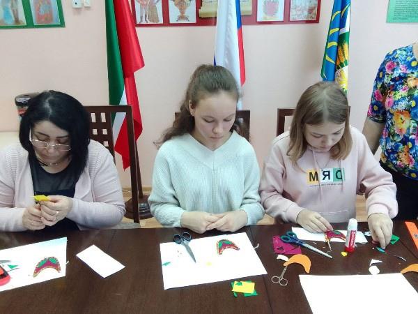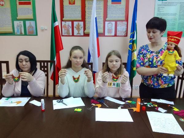 Руководитель любительского клубного формирования "Золотые ручки" провела мастер -класс по изготовлению татарского национального нагрудника-изю.