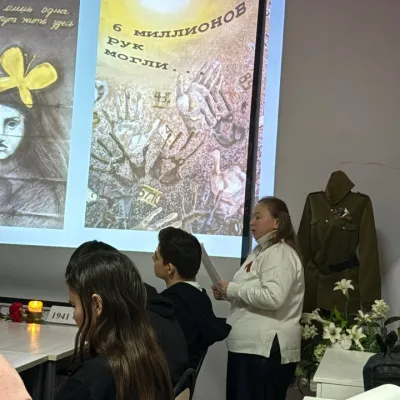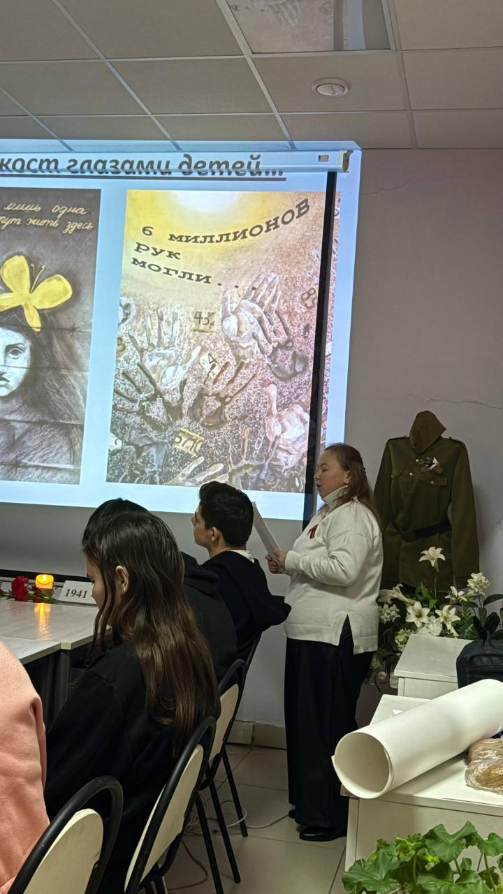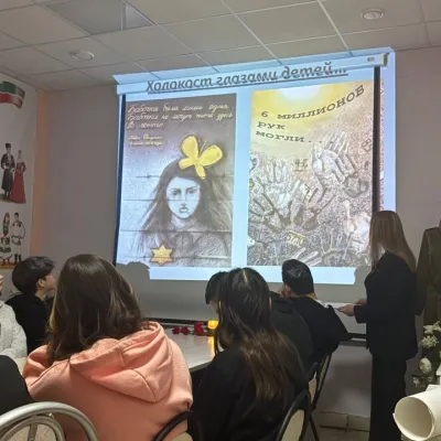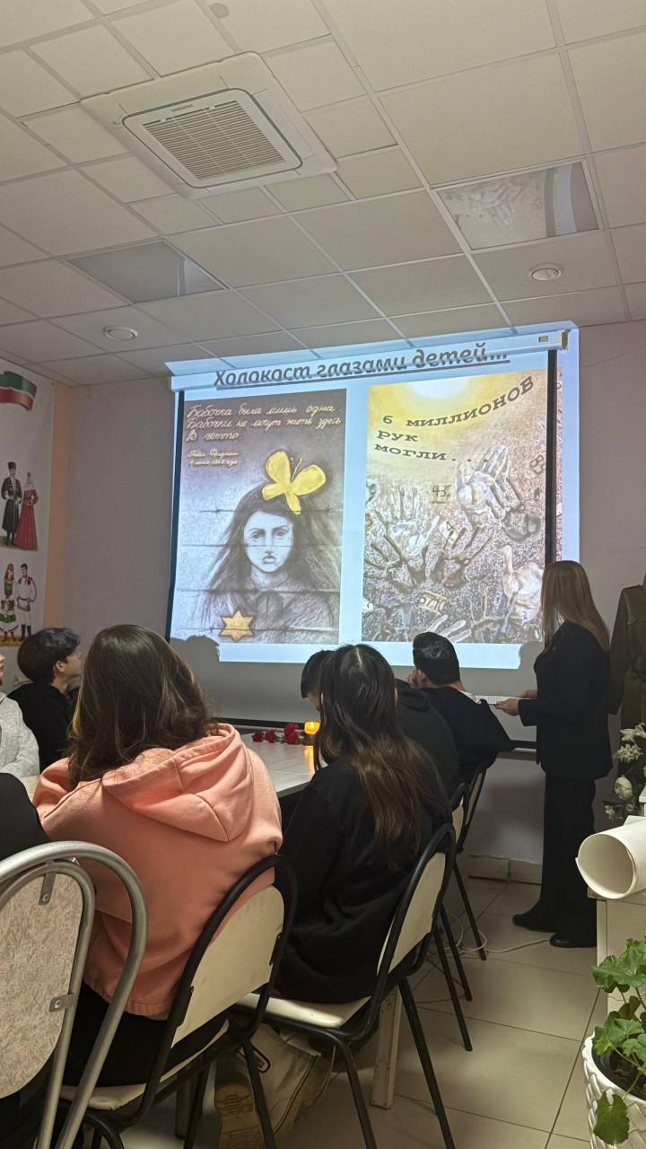На мероприятии они рассказали школьникам и студентам о крупнейшем геноциде в истории человечества, в результате которого погибли около 6 миллионов евреев. В память об этом был показан тематический видеоролик, а также участники мероприятия почтили погибших в концлагерях минутой молчания.