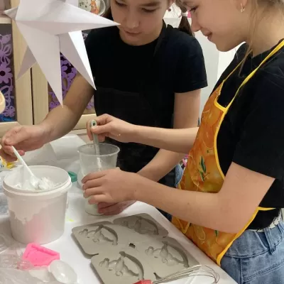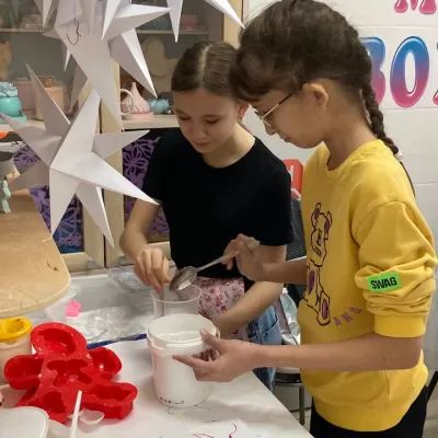 На очередном занятии студии декоративно- прикладного творчества «Мир творчества» дети под руководством Марины Собиной с увлечением изучали пропорции смешивания гипса и воды.