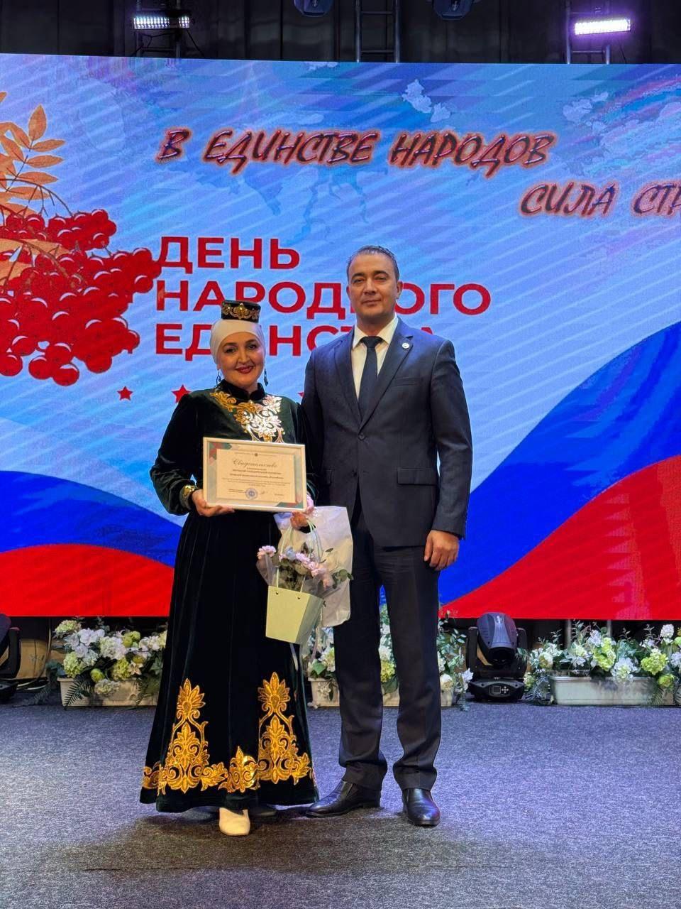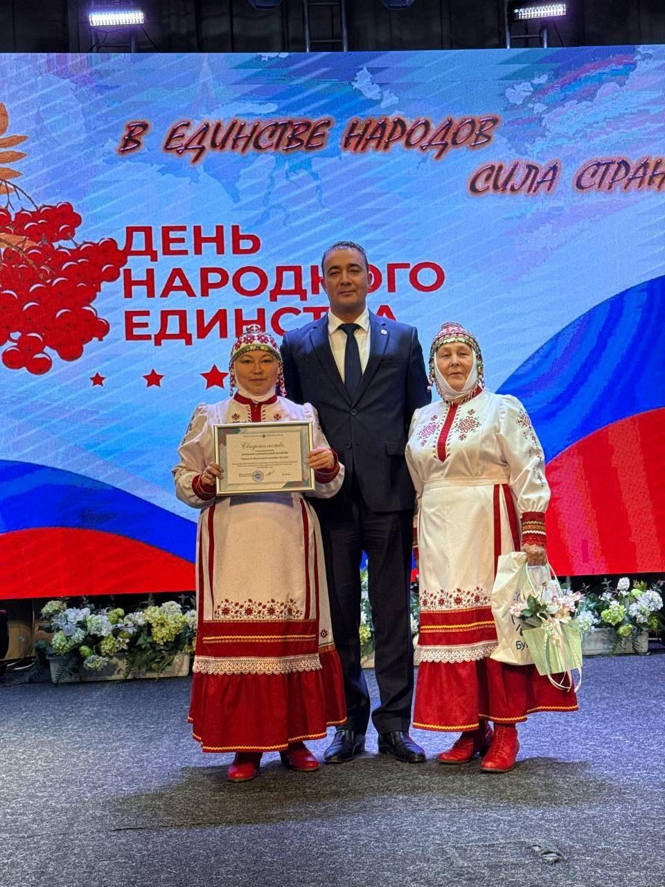 Глава района также вручил ансамблям "Туслах" и "Сююмбике" свидетельства о присвоении звания "Народный самодеятельный коллектив". Эти коллективы бережно сохраняют и развивают национальные культурные традиции.
