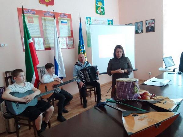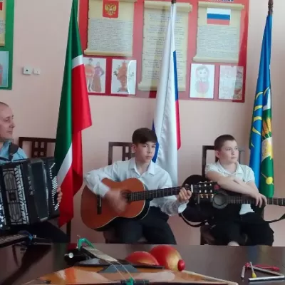 Участники вокальной студии "Жырлыйк эле и группы гитаристов "Зеркала" Батыршин Данил и Хусаинов Риназ исполнили любимые композиции под гитару сольно и под аккомпанимент на баяне в исполнении Ленара Салихова.