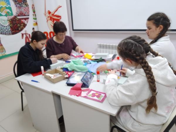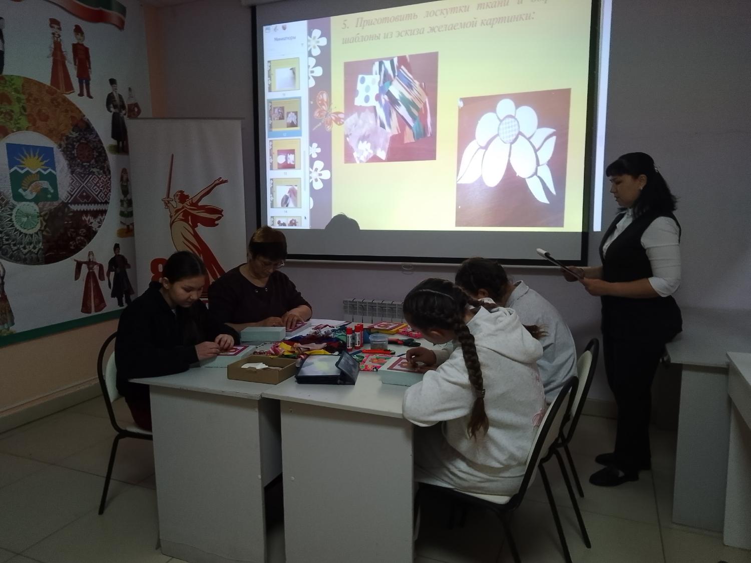 Кинусайга - японская техника изготовления картин из лоскутков ткани. Мастера декоративно - прикладного творчества Эльмира Хуснетдинова и Наиля Камалова рассказали об истории возникновения данной техники и о том, какие материалы понадобятся для работы. Участники самостоятельно изготовили красочные панно.
