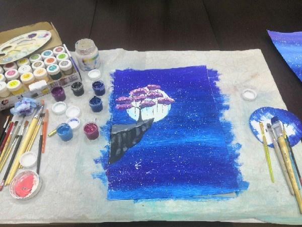 В завершении мероприятия получилась картина "Лунная сакура".