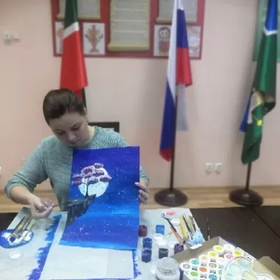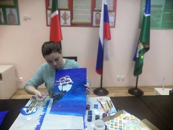 Руководитель творческой студии ART- Клякса Алсу Залялова провела мастер- класс по правополушарному рисованию под названием "Картина своми руками".