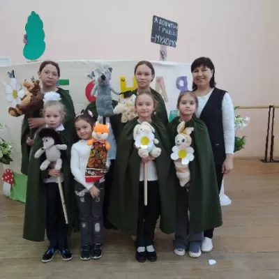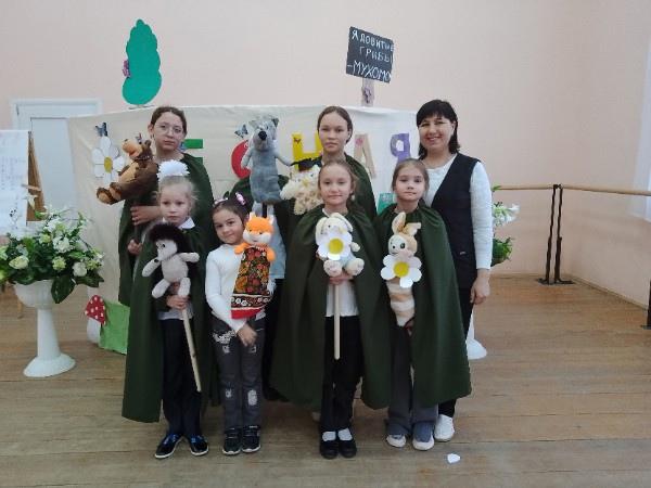 В завершении мероприятия для гостей был показан кукольный спектакль "Лесные звери идут в школу". Актерами- кукловодами выступили участники кукольного театра "Петрушка" Центра культурного развития.