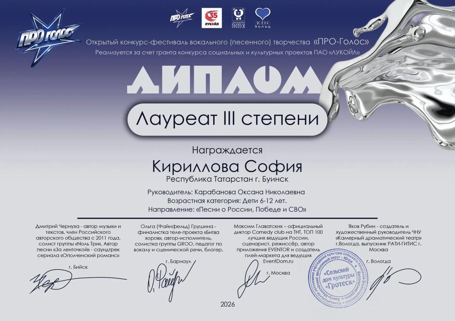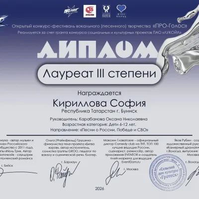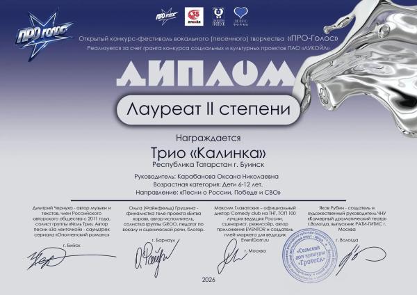Участницы детского вокального трио "Калинка" под руководством Оксаны Карабановой приняли участие в Открытом конкурсе-фестивале вокального (песенного) творчества "ПРО-Голос" и стали Лауреатами II и III степеней!