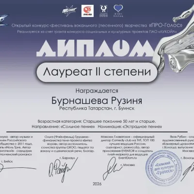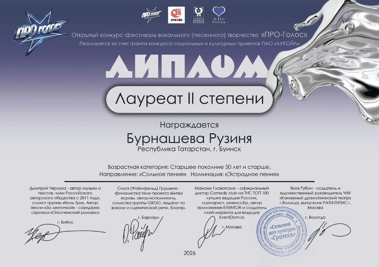 Кроме того, руководитель ансамбля и солистка Центра культурного развития Рузиня Бурнашева также стала лауреатом II степени этого же фестиваля в номинации "Эстрадное пение". Поздравляем её с заслуженной наградой!