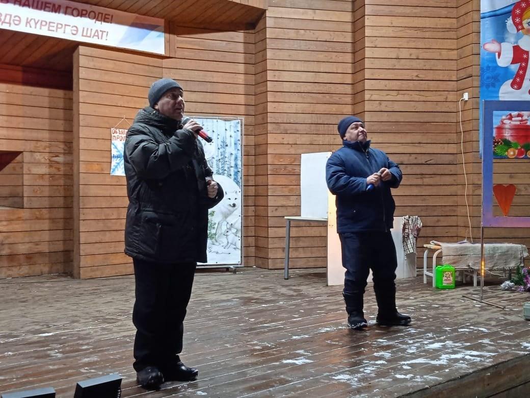 Буинцы посмотрели настоящую зимнюю сказку, водили хоровод, танцевали вместе со сказочными героями. Со сцены звучали поздравления с Новым годом и песни в исполнении дуэта "Кроссворд", Сергея Восканяна, Виктории Николаевой и Сирини Хасанзяновой. Не обошлось и без стихов Деду Морозу и сладких подарков. Завершился праздник весёлым новогодним флеш-мобом в исполнении артистов Центра культурного развития.
