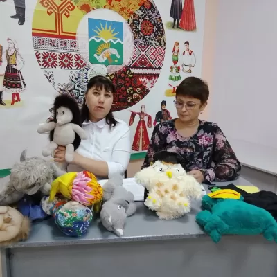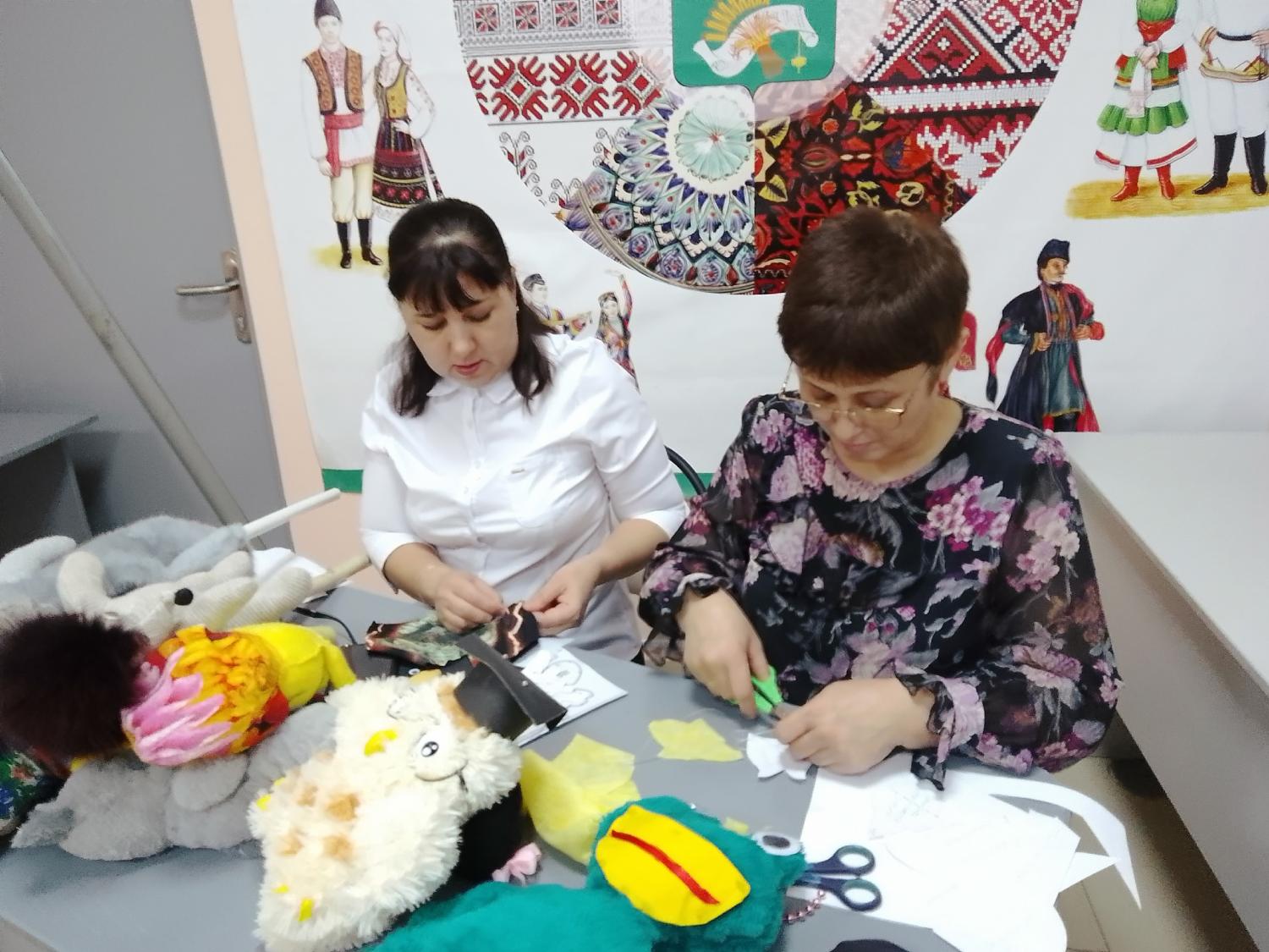 Руководители: Эльмира Хуснетдинова (кукольный театр «Петрушка») и Наиля Камалова (кружок «Золотые ручки»). Участники создали куклу-ворону — главного героя будущего спектакля.