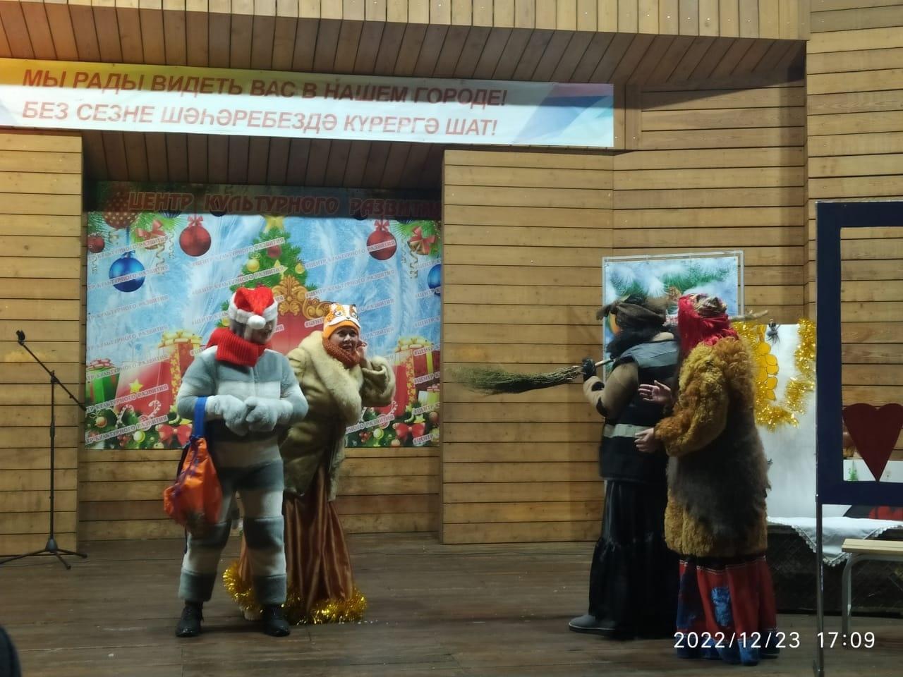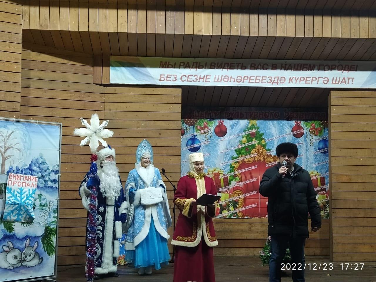 Со сцены звучали новогодние песни и добрые пожелания от солистов Центра культурного развития.