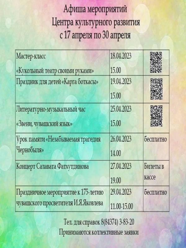 План мероприятий МБУ "Центр культурного развития" Буинского муниципального района РТ с 17 по 23 апреля 2023 года