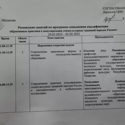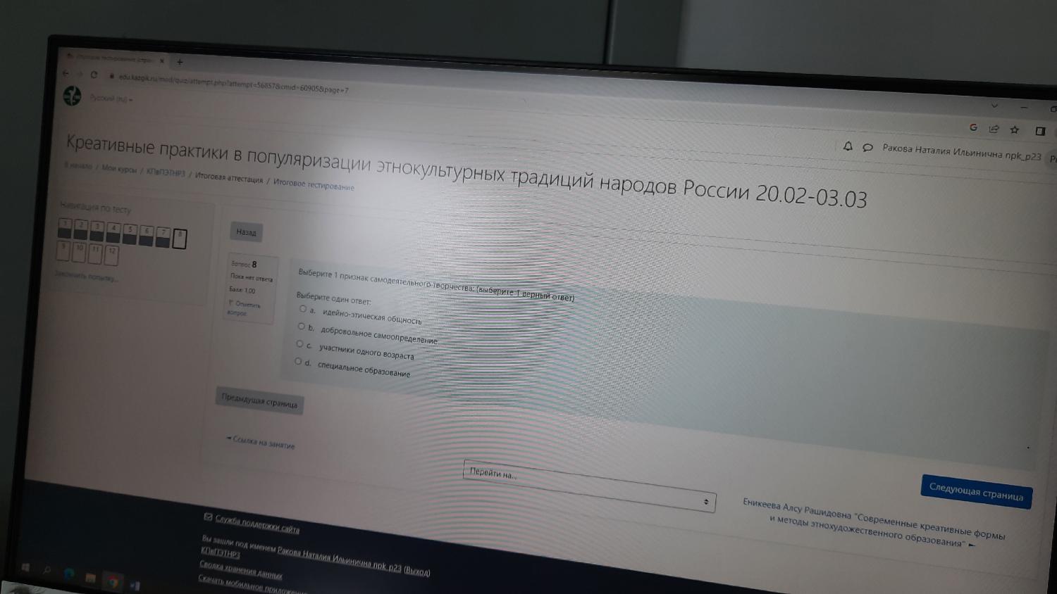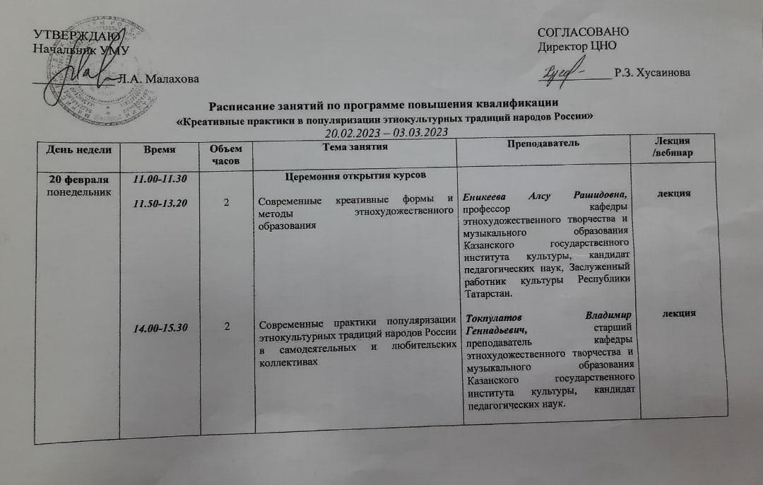 Руководители вокальных и фольклорных коллективов Центра культурного развития проходят повышение квалификации на базе Казанского государственного института культуры в рамках федерального проекта "Творческие люди". Тема курсов "Креативные практики в популяризации этнокультурных традиций народов России".