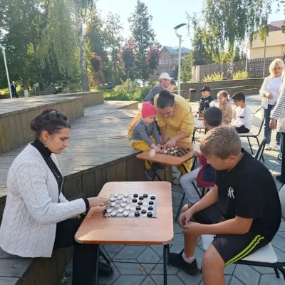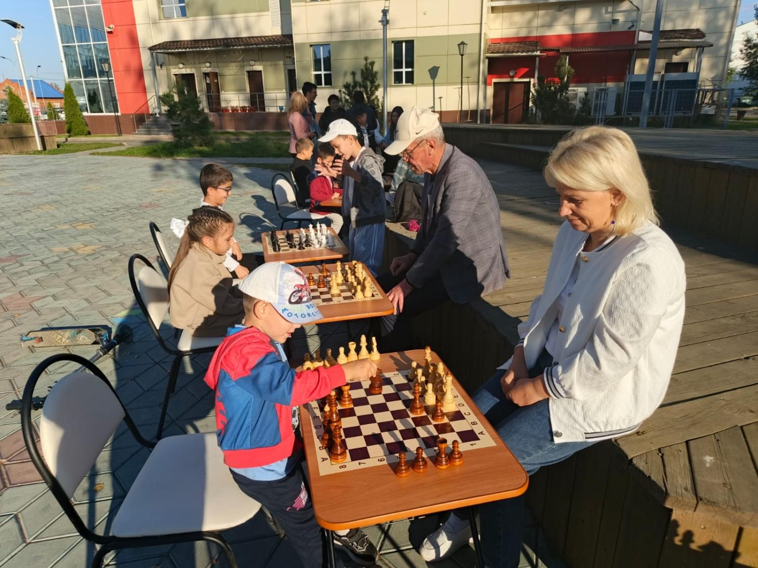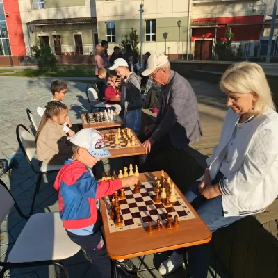 Под тёплыми лучами осеннего солнца участники погрузились в атмосферу стратегий и тактик, открывая для себя яркий и захватывающий мир шахмат.