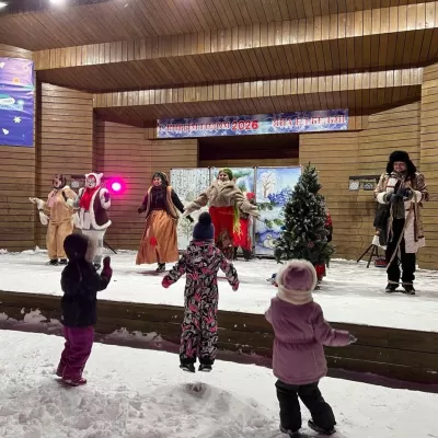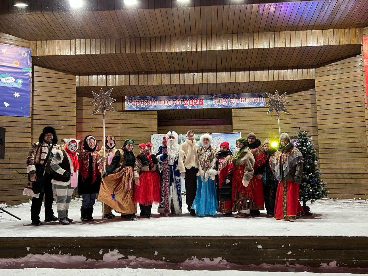 В Молодежном парке была показана новогодняя сказка, а к зрителям пришли колядовщики, которые угощали всех конфетами, создавая по-настоящему волшебную атмосферу Рождества. Не обошлось и без весёлых новогодних песен, зажигательных танцев, традиционного новогоднего хоровода вокруг ёлочки и стихов Деду Морозу.