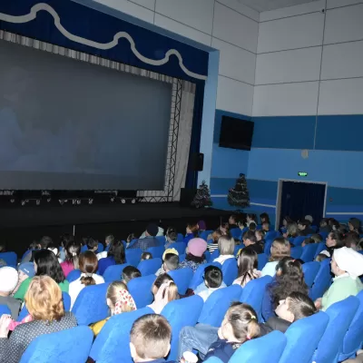 Ребята вместе с родителями посмотрели мультфильм и в завершение праздника получили приятные подарки.