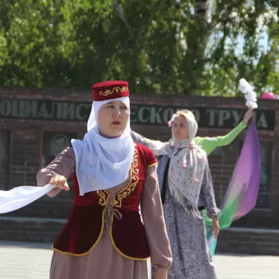 Творческие коллективы Центра культурного развития и Районного дома культуры приняли участие в театрализованном представлении , посвященном Дню Победы