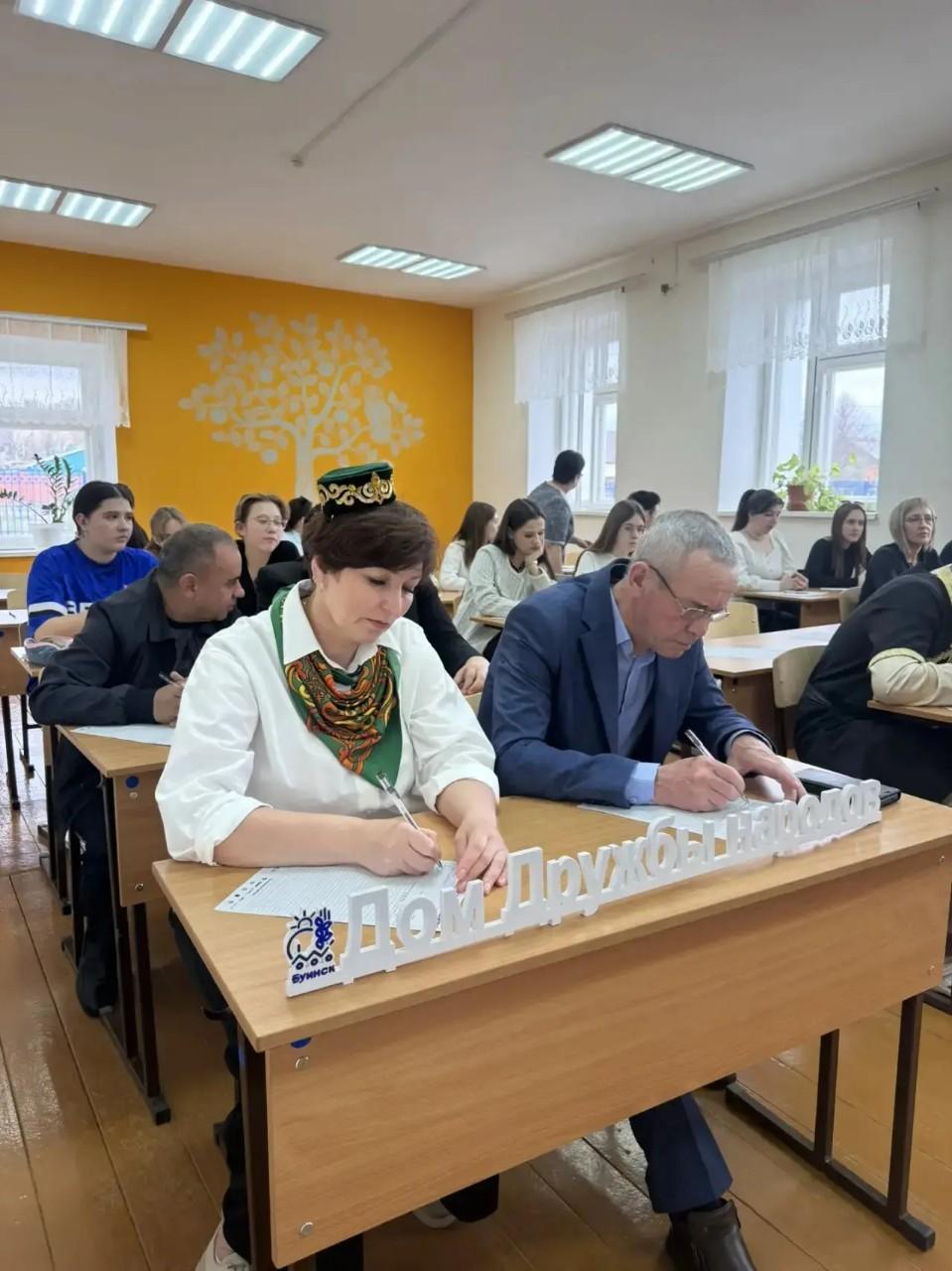 На площадке МБОУ «СОШ №1 г. Буинска» диктант писали представители национально-культурных автономий, проживающих в Буинске, чтобы проверить свои знания русского языка и окунуться в атмосферу единства и просвещения.